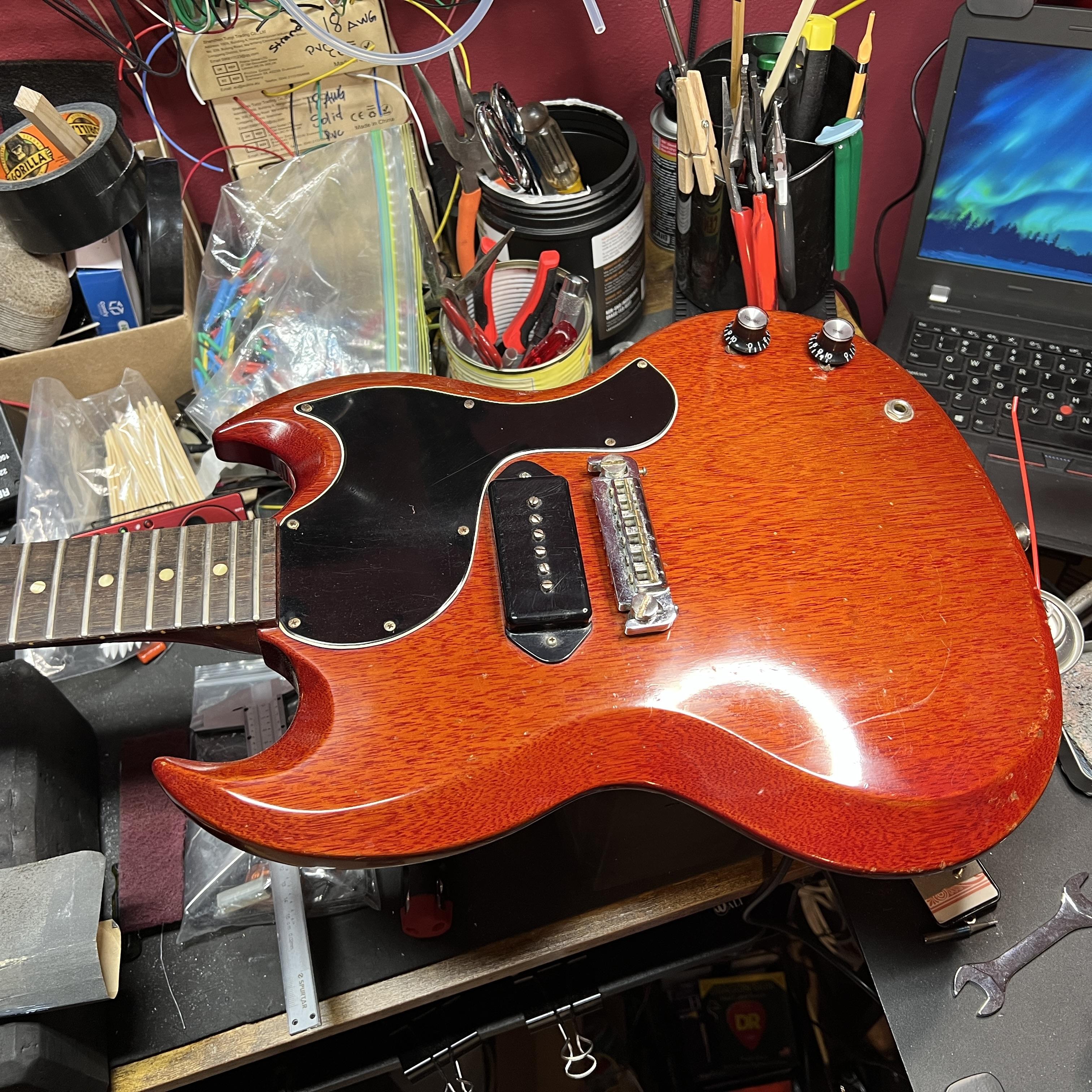 Strings, set-up, intonation, action, relief, adjustments, cleaning, dressing frets (get rid of the buzz), etc. Electronics repair and mods, replace pickups, assemble a guitar from parts, dress frets, nut slotting and shaping, neck de-glossing, and more.